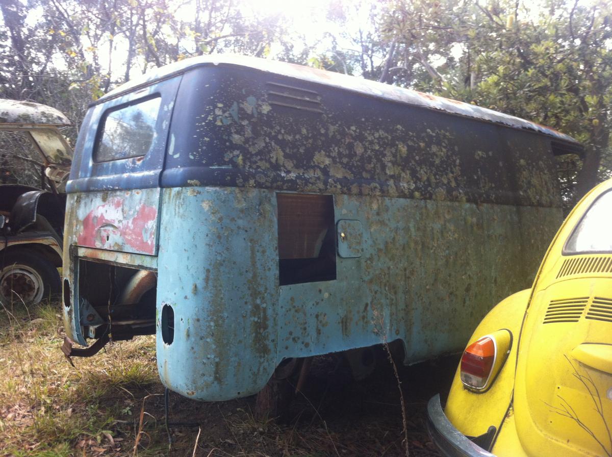 We stumbled across a VW graveyard on the weekend! It was very cool, with heaps of old VW Beetles, and a few Bay Window Kombis, Splitscreens and Type 3s.