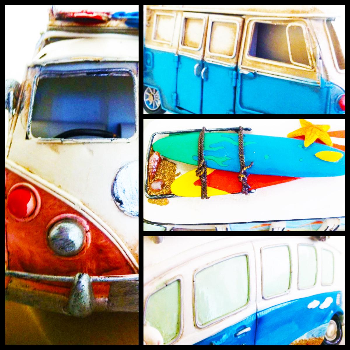 Here's a collage of photos of some of our stock, including our VW Kombi Flip Top Photo Frame and Money Box, our Kombi Metal Photo Frame with Surf Board, our large VW Kombi Money Box with Beach Gear and VW Kombi Money Box and Photo Frame.
