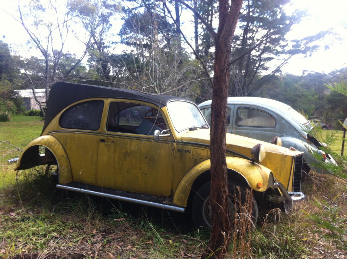 We stumbled across a VW graveyard on the weekend! It was very cool, with heaps of old VW Beetles, and a few Bay Window Kombis, Splitscreens and Type 3s.